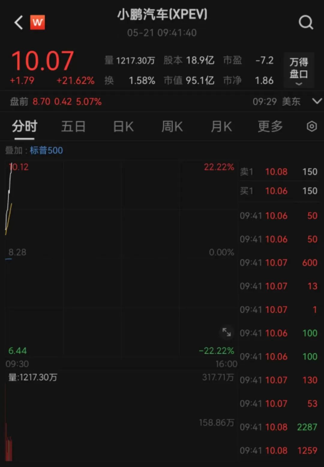 5月21日晚间,截至发稿,美股小鹏汽车开盘涨幅达21.62%。