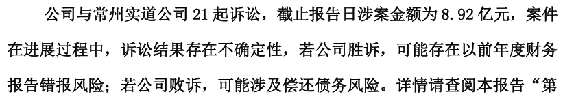 6月12日晚,ST高鸿(000851)公告称,截至公告披露日,公司下属子公司共存在6笔逾期债务,公司为上述6笔逾期债务提供连带责任保证担保,共计1.09亿元。该事项可能会对公司产生一定的财务风险。此外,公司与常州实道公司存在21起诉讼,涉案金额为8.92亿元。若公司败诉,可能还涉及偿还债务风险。