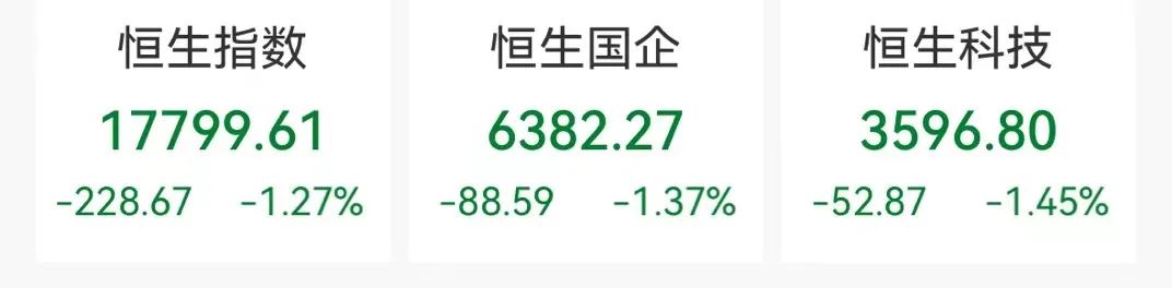 7月5日,港股走势偏弱,港股三大指数集体调整,恒生科技指数一度大跌2%。截至收盘,恒生指数报17799.61点,跌幅为1.27%;恒生科技指数报3596.80点,跌幅为1.45%;恒生国企指数报6382.27点,跌幅为1.37%。