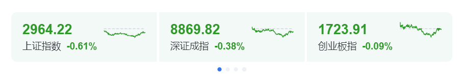 三大指数今日震荡调整,沪指午后一度跌超1%,随后探底回升跌幅收窄。截至收盘沪指跌0.61%,深成指跌0.38%,创业板指跌0.09%。
