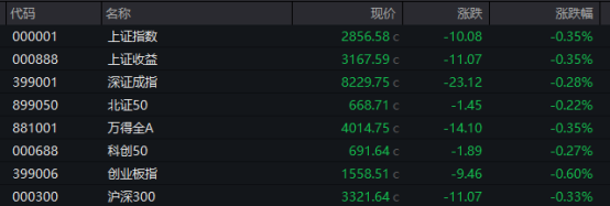 A股市场主要指数走低