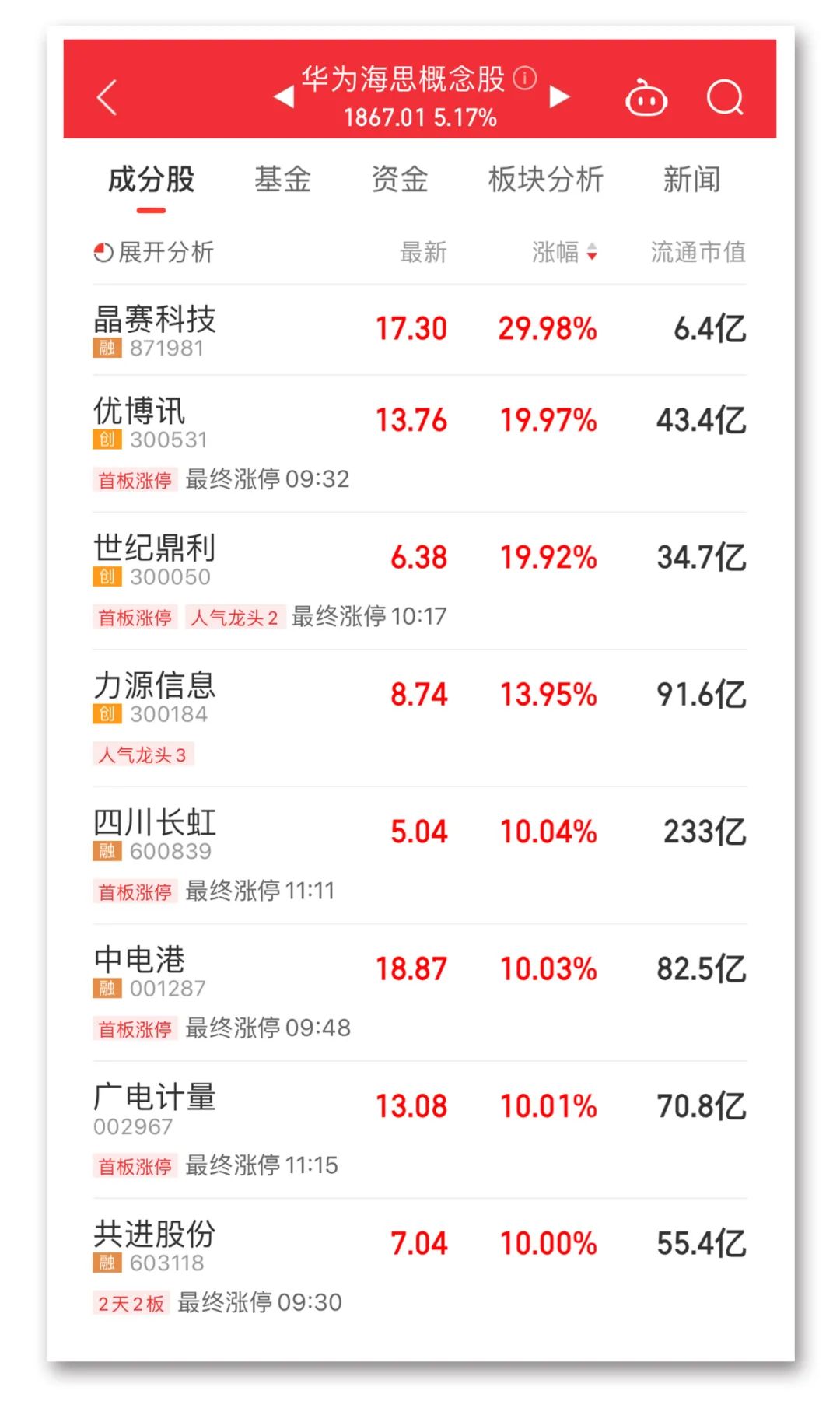 华为概念股今日迎来爆发。截至收盘,华为海思概念股大涨超5%。