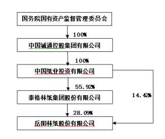 公开资料显示,中国纸业持有泰格林纸集团55.92%的股份,并直接持有岳阳林纸14.42%股份,为岳阳林纸直接控制人。