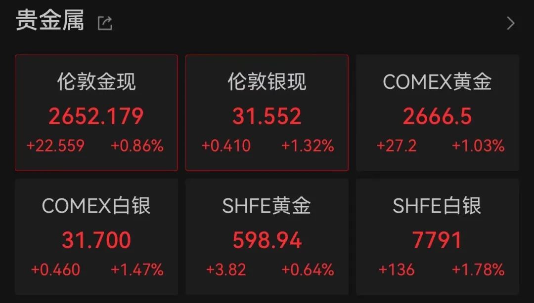 数据公布后,黄金、白银价格继续拉升。