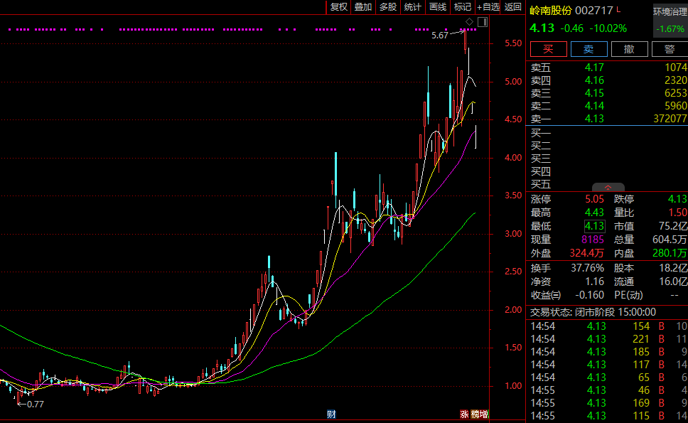 不过,虽然岭南股份连续跌停,依然是半年以来的大牛股,自2024年6月25日以来,岭南股份一路从0.77元暴涨至5.67元,区间涨幅超600%。