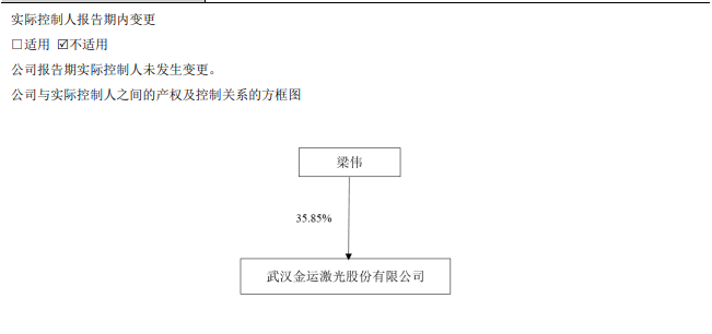 截至2024年第三季度末,梁伟直接持有金运激光35.85%的股份比例,是金运激光的控股股东和实控人。