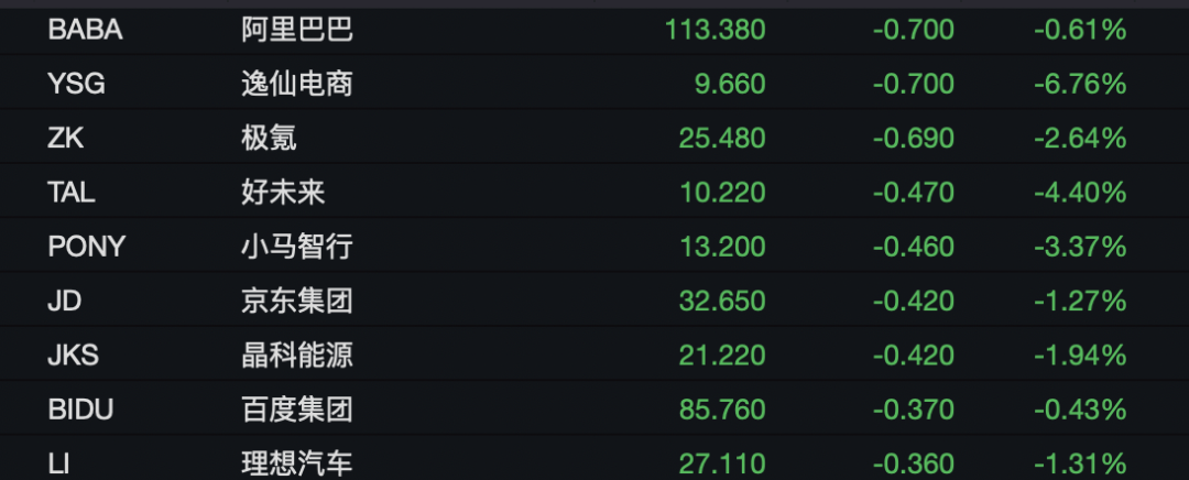 中概股方面,纳斯达克中国金龙指数下跌0.49%。京东下跌1.30%,拼多多跌0.46%,蔚来汽车跌0.87%,小鹏汽车跌1.38%,理想汽车跌1.31%。