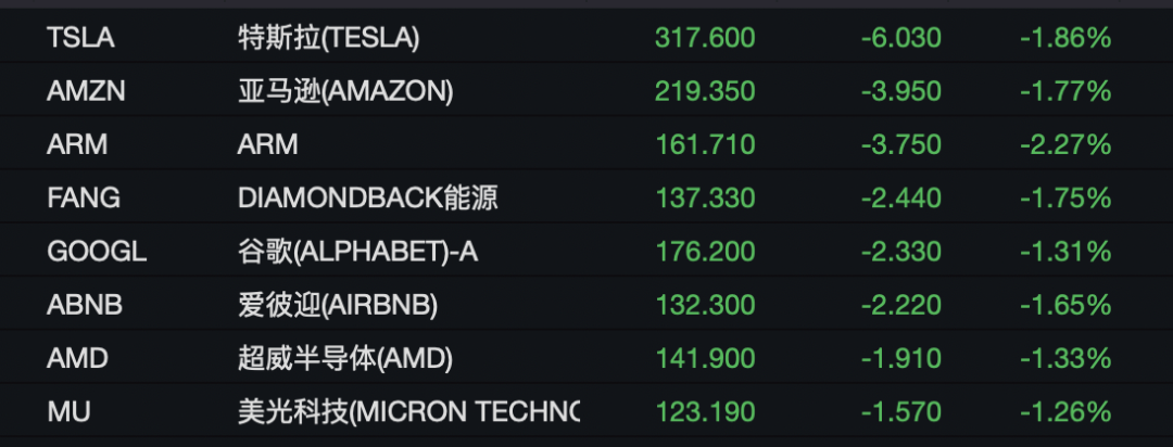 美股科技七巨头涨跌不一,苹果上涨2.03%,英伟达上涨0.15%,谷歌下跌1.29%,亚马逊下跌1.75%,特斯拉下跌1.84%。