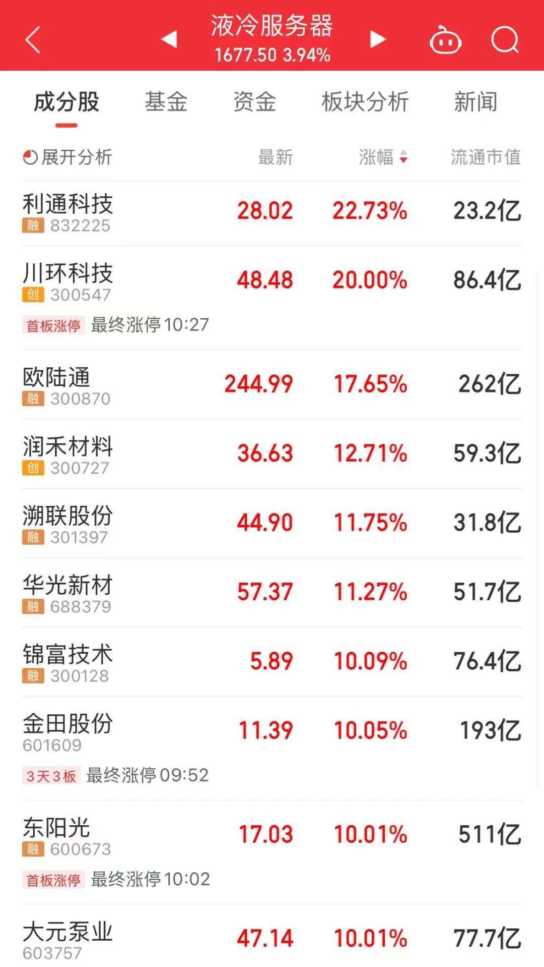 液冷服务器板块大涨