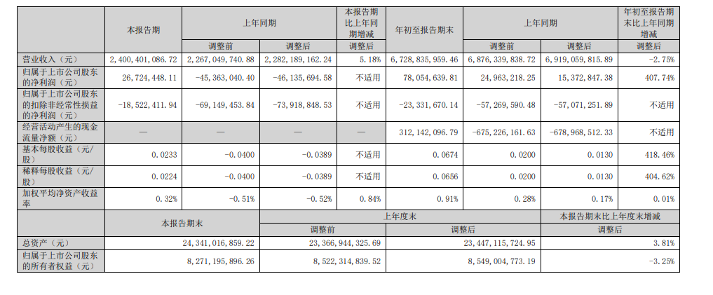 多氟多三季度净利润2672万元,同比扭亏为盈