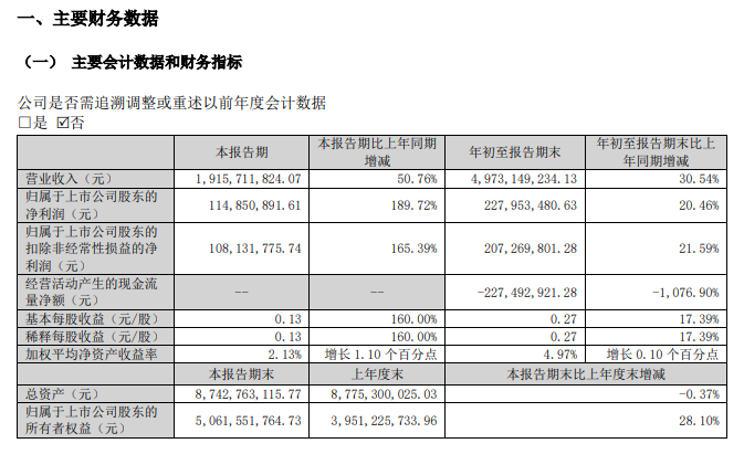 10月26日,正海磁材公告称,公司2025年第三季度营业收入为19.16亿元,同比增长50.76%,归属于上市公司股东的净利润为1.15亿元,同比增长189.72%。年初至报告期末,营业收入为49.73亿元,同比增长30.54%,归属于上市公司股东的净利润为2.28亿元,同比增长20.46%。
