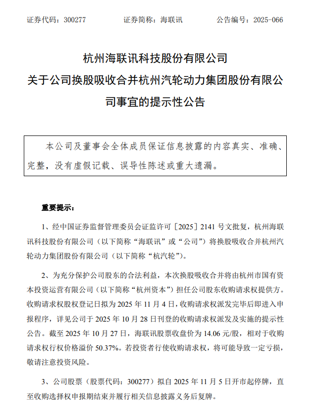 10月27日晚,航新科技公告,公司控股股东广州恒贸创业投资合伙企业(有限合伙)(以下简称“广州恒贸”)正在筹划公司控制权变更相关事宜,可能导致公司控股股东、实际控制人发生变更。公司股票及可转换公司债券自10月28日开市起停牌,预计停牌时间不超过2个交易日。