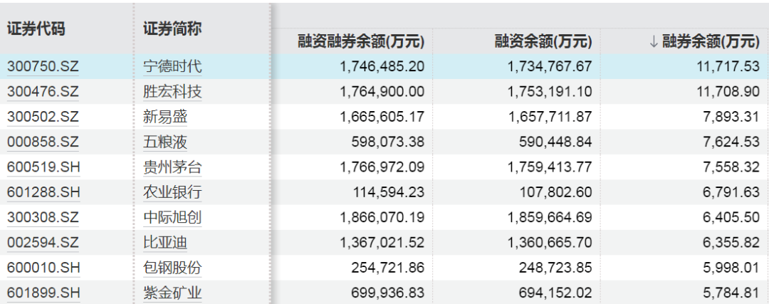 融券余额前十股票