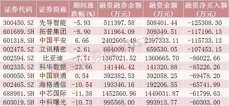 10月融资净卖出金额前十股