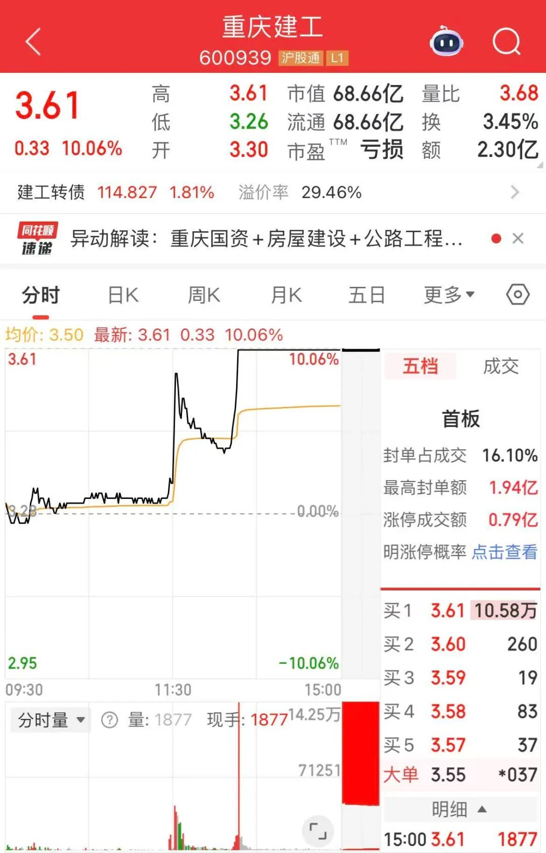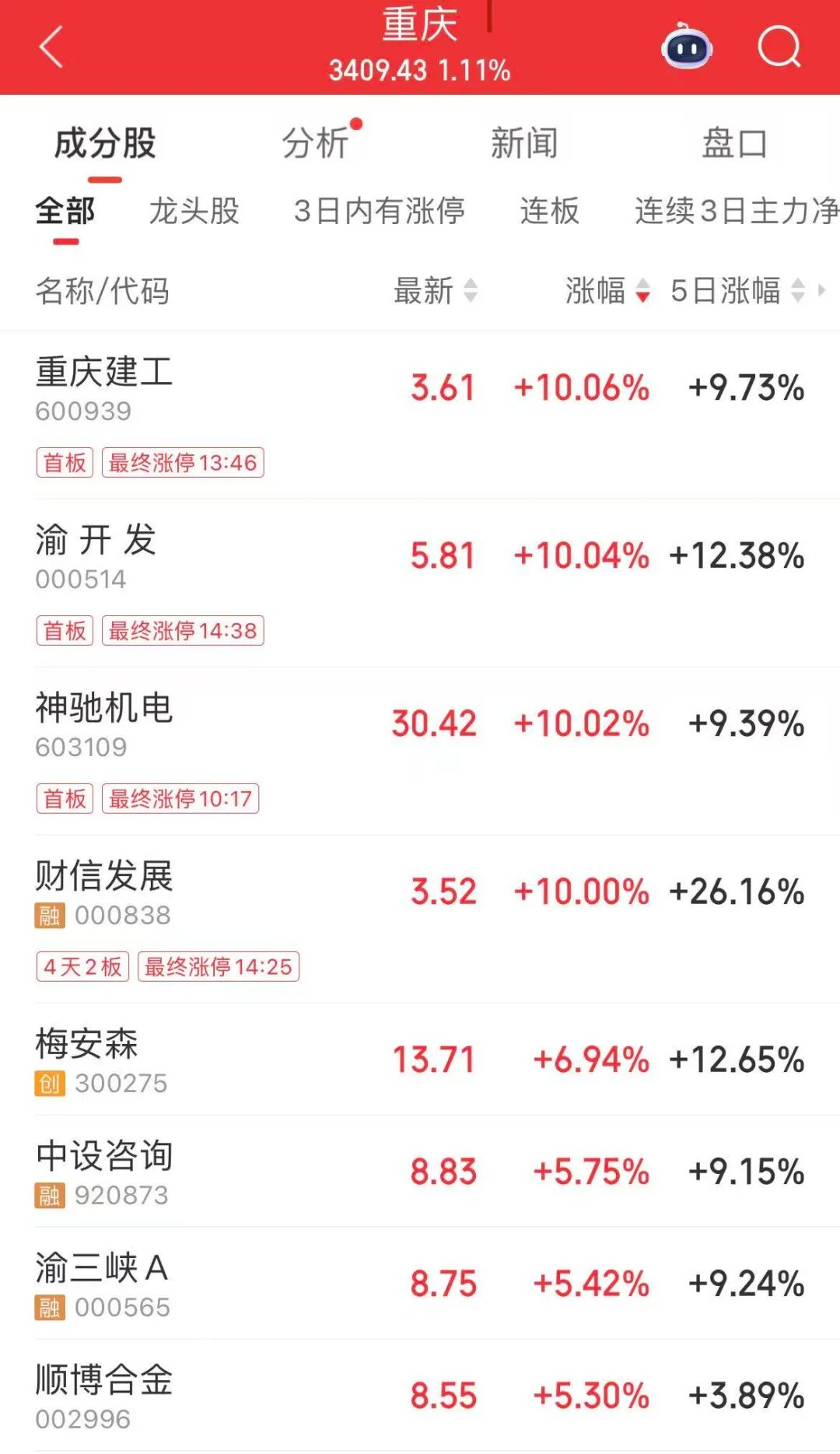 重庆板块午后拉升