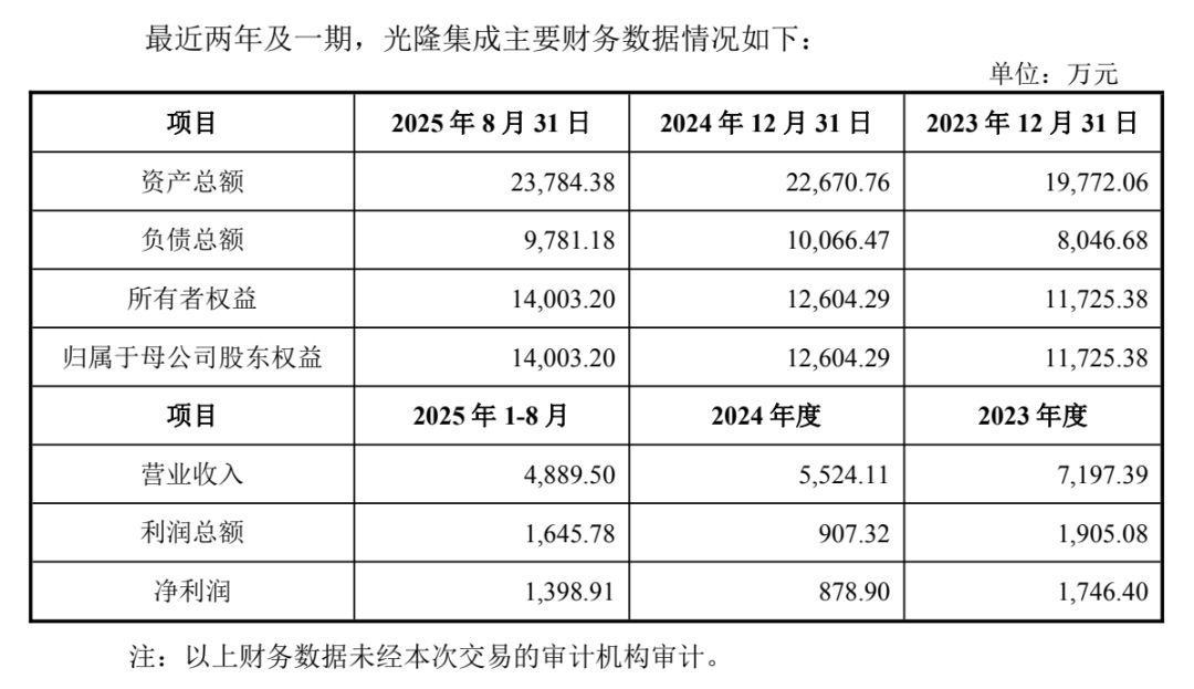 具体来看,光隆集成主要从事光开关等无源光器件的研发、生产和销售,是行业内少数可提供全类型光开关产品及全速度等级光开关的企业,产品包括光开关、光保护模块,以及光衰减器、波分复用器、环形器等其他光学器件和OCS(光路交换机)等,产品广泛应用于光网络保护、测试系统、AI智算中心、数据中心光路调度、光传感、激光雷达等领域。2025年1-8月,光隆集成实现营业收入4889.50万元,实现净利润1398.91万元。
