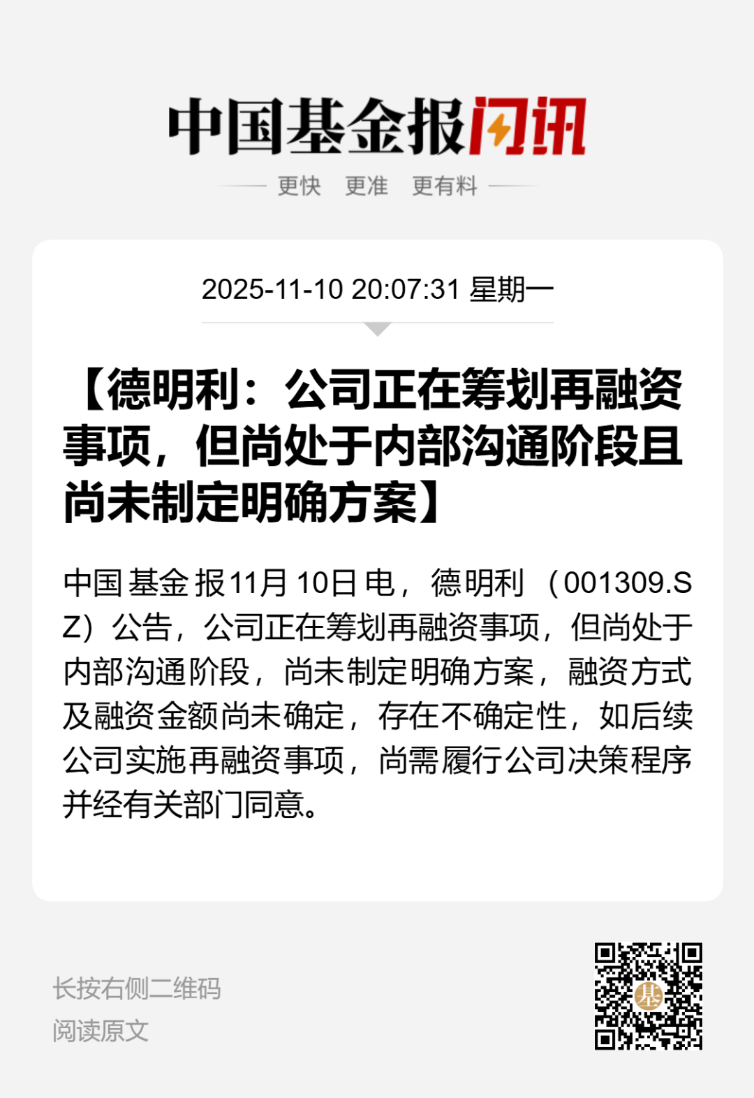 区别于此前股价异动公告,德明利在11月10日晚间公告称,公司正在筹划再融资事项,但尚处于内部沟通阶段,未制定明确方案,具体融资方式及金额未确定。