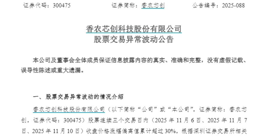 经济观察网香农芯创公告,公司目前主要业务为芯片分销与产品研发,公司关注到近期市场对于存储芯片涨价报道,公司及子公司目前生产经营情况正常,主营业务未发生重大变化,基本面未发生重大变化。