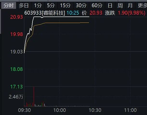 半导体芯片板块震荡走高,睿能科技(603933)涨停,希荻微、力芯微、国芯科技、海光信息等涨幅居前。