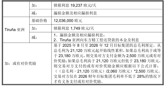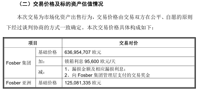 本次交易的基础价格合计为7.74亿欧元,采用国际通用的锁箱机制作为价格调整机制,锁箱日为2024年12月31日,锁箱日至交割日期间的锁箱利息根据标的公司的预计净现金利润确定。交割日前,标的公司仍将纳入上市公司合并报表范围。