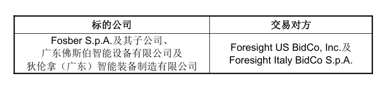 公告显示,本次交易,东方精工以及公司100%控股的东方精工(荷兰)拟以现金方式,将所持Fosber集团、Fosber亚洲和Tiru a亚洲三家公司的100%股权出售给Foresight US及Foresight Italy。