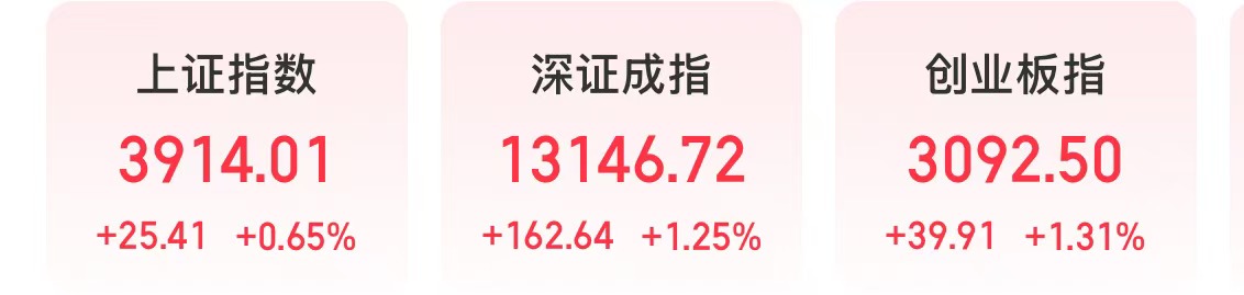今天,A股上涨。截至收盘,上证指数上涨0.65%,深证成指上涨1.25%,创业板指上涨1.31%。