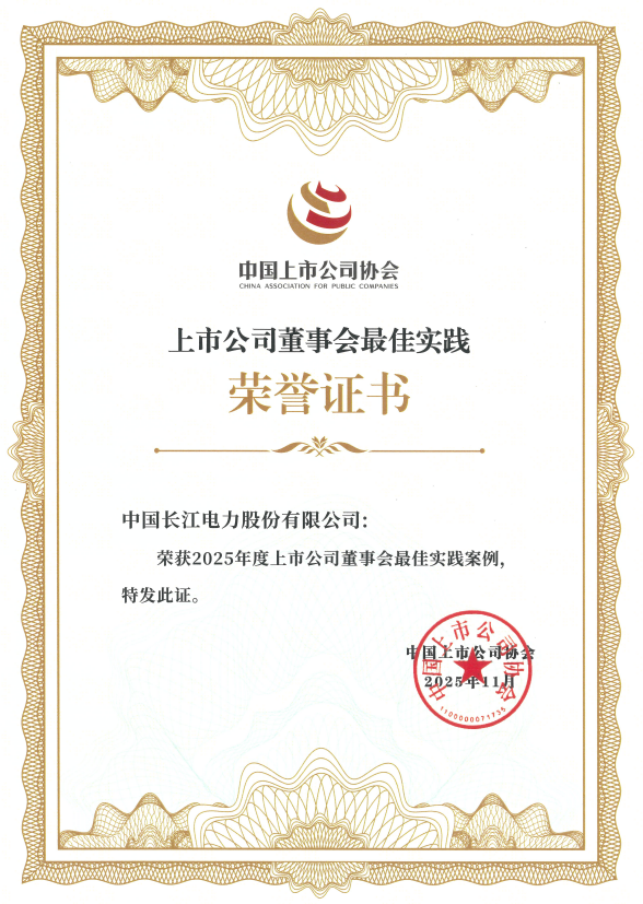 近日,长江电力(600900)先后荣获中国上市公司协会“2025年度董事会最佳实践案例”,中国证券报2025年上市公司金牛奖“最具投资价值奖”“分红回报奖”,上海证券交易所沪市上市公司2024-2025年度信息披露工作“A级”最高评价等奖项,充分彰显了长江电力在公司治理领域的专业水平和突出成绩。