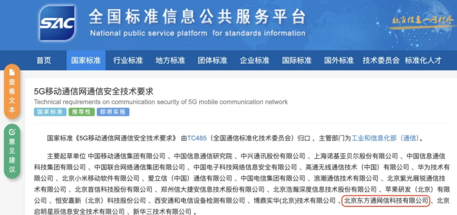 东方通参与编制的首个5G安全领域国家标准GB/T 46462-2025发布
