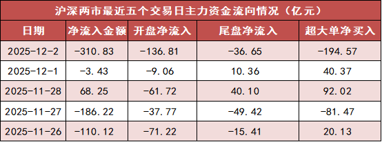 今日沪深两市主力资金开盘净流出136.81亿元,尾盘净流出36.65亿元,全天净流出310.83亿元。