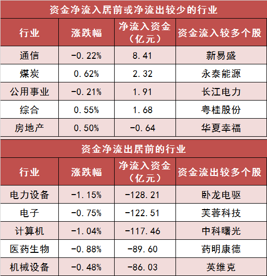 【2日资金路线图】两市主力资金净流出超310亿元 通信等行业实现净流入