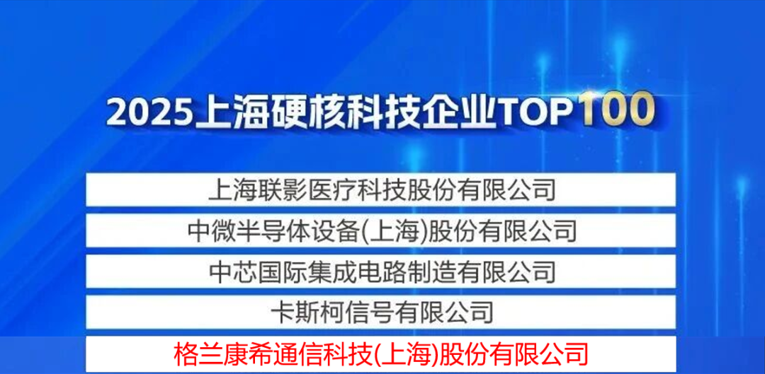 康希通信荣登“2025上海硬核科技企业TOP100”榜单