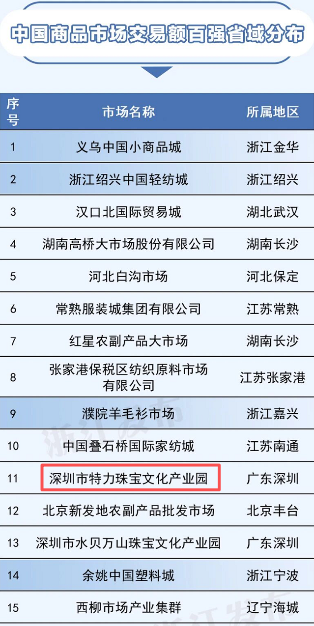 喜报!特力珠宝文化产业园入选“中国商品市场交易额百强”榜单