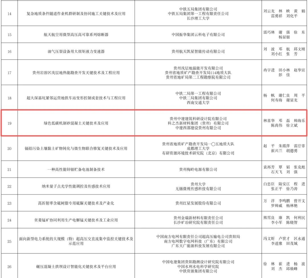 在贵州科之杰的实验室里,关于低碳的变革正在发生。他们把目光投向了本地资源,用机制砂替代传统砂石,降低水泥依赖,提高固废利用率。这项技术,最终凝结成《绿色低碳机制砂混凝土关键技术及应用》,在近期荣获贵州省科学技术进步奖。