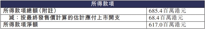 遇见小面本次发行的最终发售价为7.04港元,所得款项总额为685.4百万港元,扣除按最终发售价计算的估计应付上市开支68.4百万港元后,所得款项净额为617.0百万港元。
