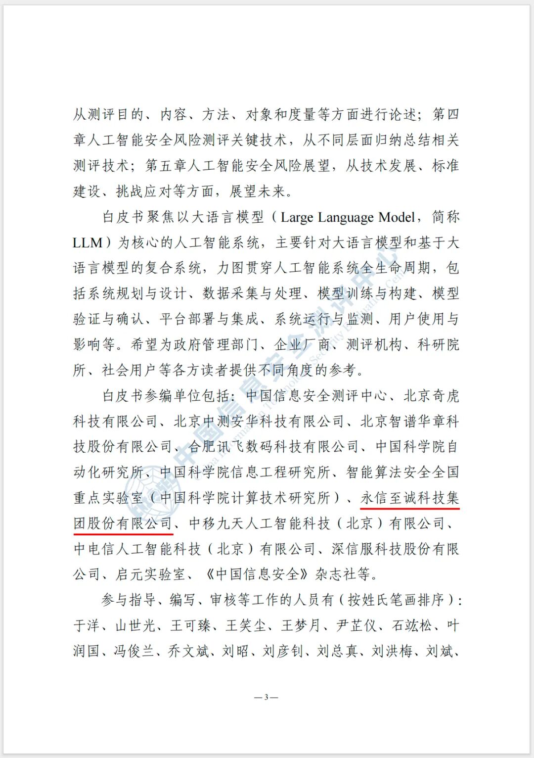 赋能AI安全治理 永信至诚深度参编的《人工智能安全风险测评(2025 年)》白皮书正式发布