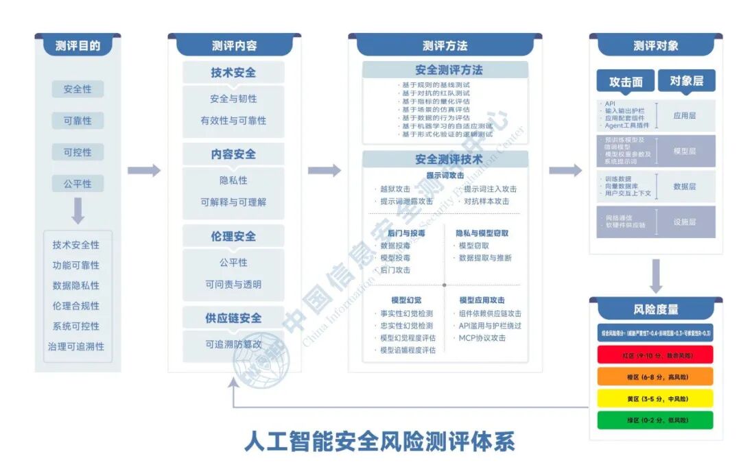 白皮书围绕“为何测”“测什么”“怎么测”“测哪些”,系统的总结梳理了人工智能安全风险分析框架,构建人工智能安全风险测评体系,理清系统性方法体系,为政府管理部门、企业厂商、测评机构、科研院所等开展工作提供清晰可操作的安全测评指引。