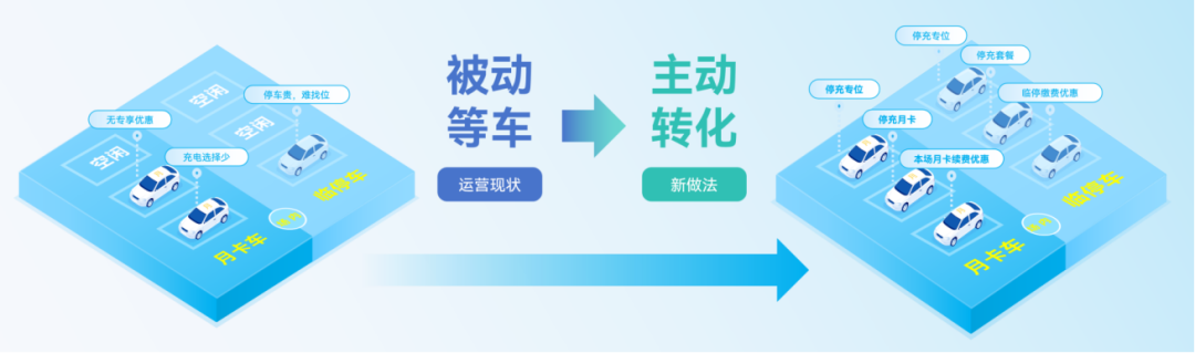 每一辆新能源私家车除了定期充电需求,还有更为普遍高频的停车需求,因此,通过联合作为出行目的地的停车场的停车资源,利用月卡续费优惠、临停缴费优惠、停充月卡/专位/套餐,可以有效地激发私家车主主动充电,将社区场景的充电运营从“被动等待”转向“主动增值”。