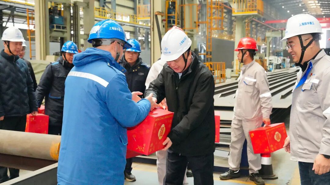 1月1日,上海振华重工(600320)集团党委书记、董事长由瑞凯赴振华长兴分公司开展安全检查和节日慰问,党委副书记、工会主席王成等参加活动。
