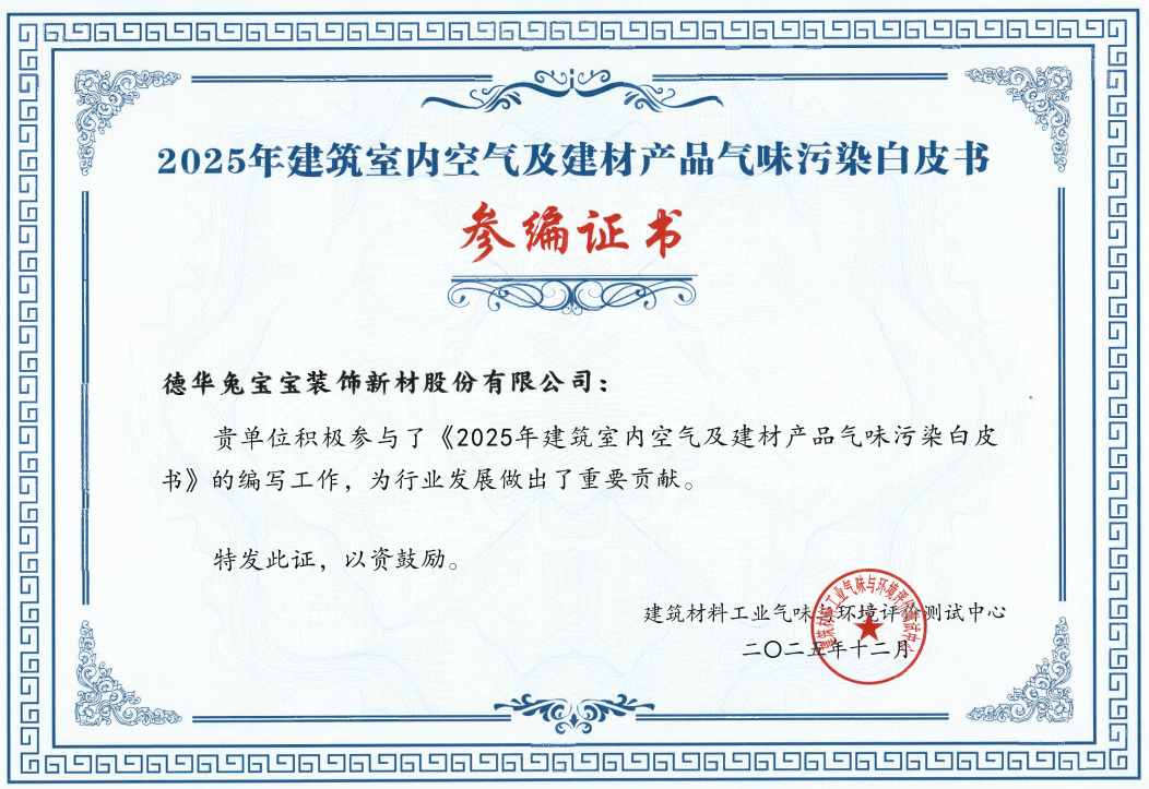 共筑行业标准!兔宝宝深度参编《2025年建筑室内空气及建材产品气味污染白皮书》