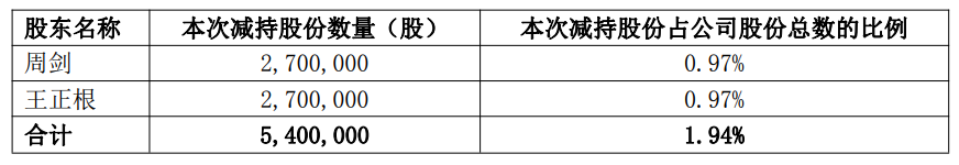 公司控股股东周剑及王正根合计持有公司股份109,537,827股(占当前总股本剔除回购专用账户中的股份数量后的39.35%),计划以集中竞价或大宗交易的方式减持公司股份,减持数量不超过5,400,000股,即不超过公司当前总股本剔除回购专用账户中的股份数量后的1.94%。减持期间为自减持计划(883921)公告之日起15个交易日之后三个月内(即2026年1月29日至2026年4月28日)。