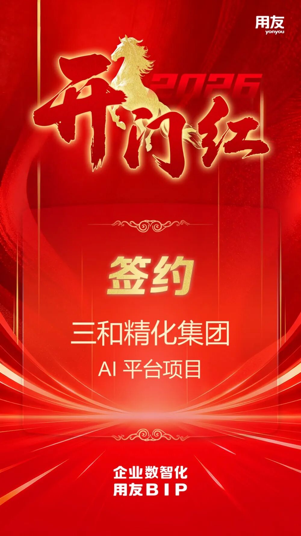 近日,用友与三和精化集团成功签约AI平台项目。三和精化将基于用友BIP,在数智化基础上深化AI落地应用,携手用友共建全业务场景智能服务体系,树立精细化工行业智能化转型标杆。