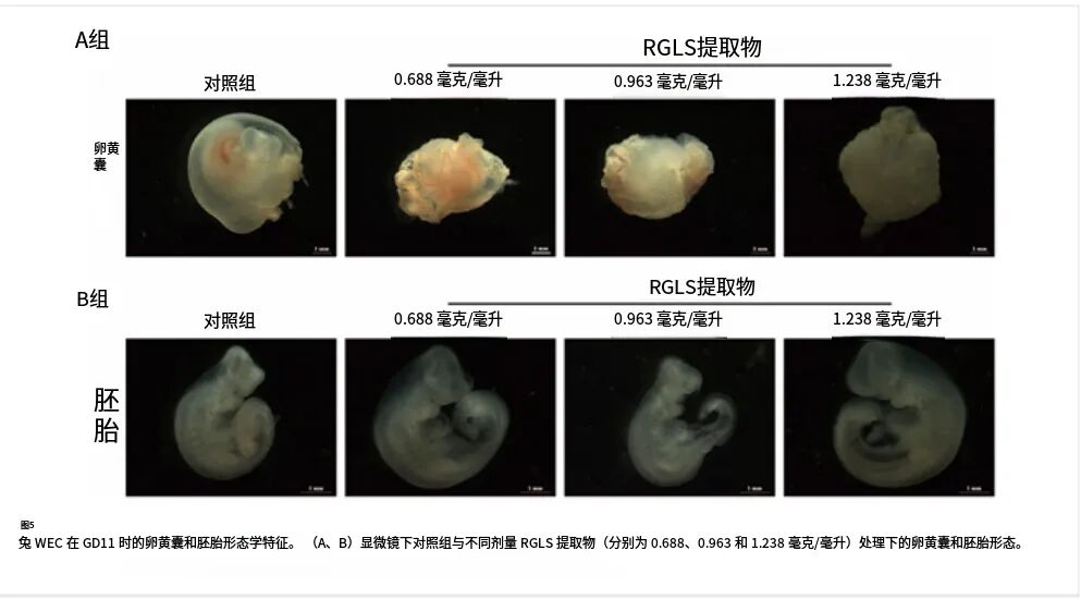 在家兔胚胎实验中,去壁灵芝孢子粉处理组的胚胎发育良好,形态正常,没有出现发育迟缓或畸形。
