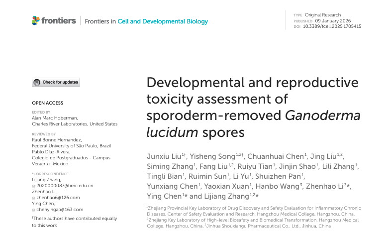 为了回答这个关键问题,由浙江中医药大学与寿仙谷联合研究团队开展了一项系统、严谨的非临床安全性评价研究。这项研究完全遵循国际公认的药品安全性研究标准(ICH S5(R3)指南),可以看作是对去壁灵芝孢子粉进行的一场高规格、全方位的“安全大考”。