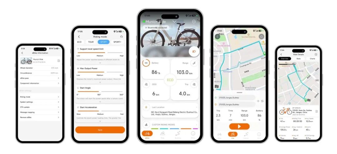 交流会上,我们集中展示了在欧美市场备受好评的中置电机、轮毂电机及GVT自动变速驱动系统,涵盖为不同运动场景设计的M510/M560/M820系统、适用于商用载货的M430系列,以及专为城市通勤打造的H730自动三档变速系统等。一同亮相的还有全新升级的 Bafang Go App——这一版本化繁为简,重点优化了新用户注册流程、车辆绑定步骤,并提升了个性化参数设定与多版本驱动系统间的兼容性。尤其值得一提的是,新用户注册流程极度简化,新手用户也能在30秒内轻松完成。