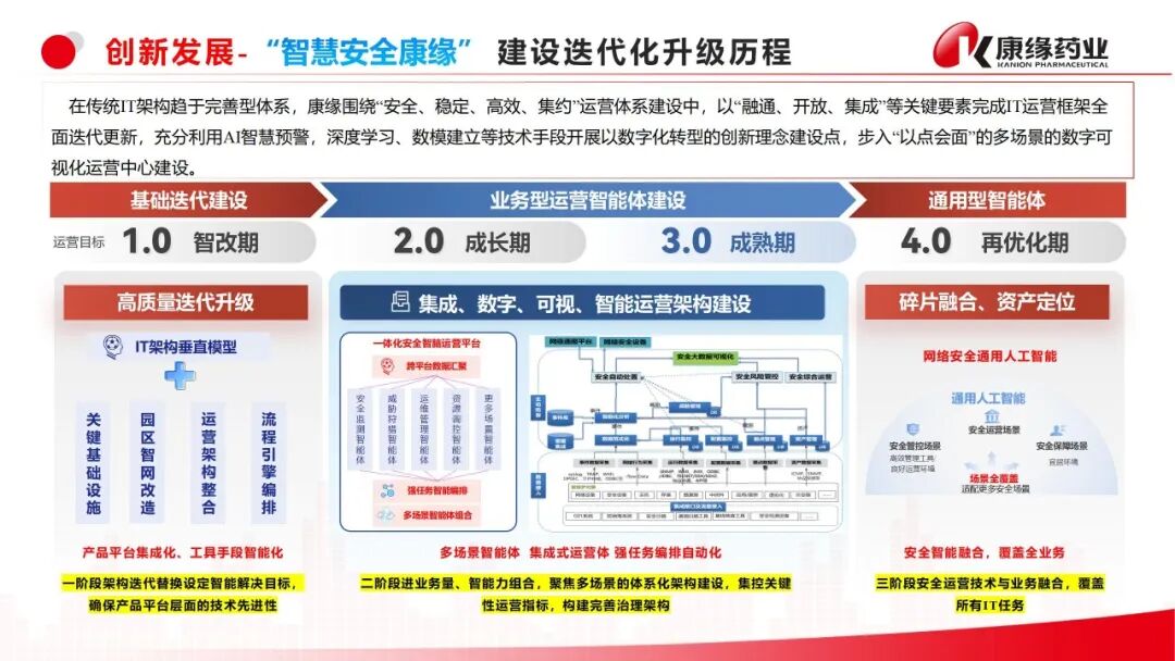 此次荣获四星级认证,不仅是对康缘药业信息安全建设成果的高度认可,更为其高质量推进新型工业化注入强劲动能。面向未来,康缘将以“智能优化级”(5星级)为目标,深化网络安全体系建设,积极探索人工智能、大数据分析等前沿技术在安全运营中的融合应用,致力于打造工业领域网络与数据安全的标杆典范,为江苏省新型工业化发展筑牢安全底座、贡献康缘力量。