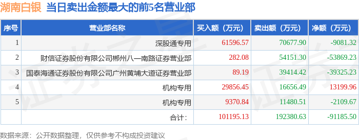当日公布的交易所龙虎榜中有机构专用席位现身的个股共30家,其中湖南白银(002716)、鹏鼎控股(002938)、三变科技(002112)分别居机构净买入前三名。详情如下: