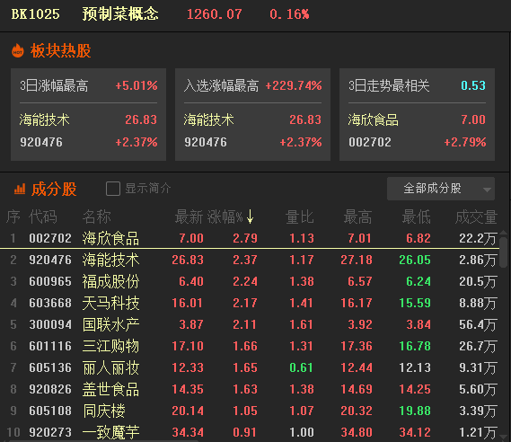 华鑫证券则表示,预制菜标准面向公众公开征求意见,有望进一步推动行业自律,利好头部品牌巩固优势。