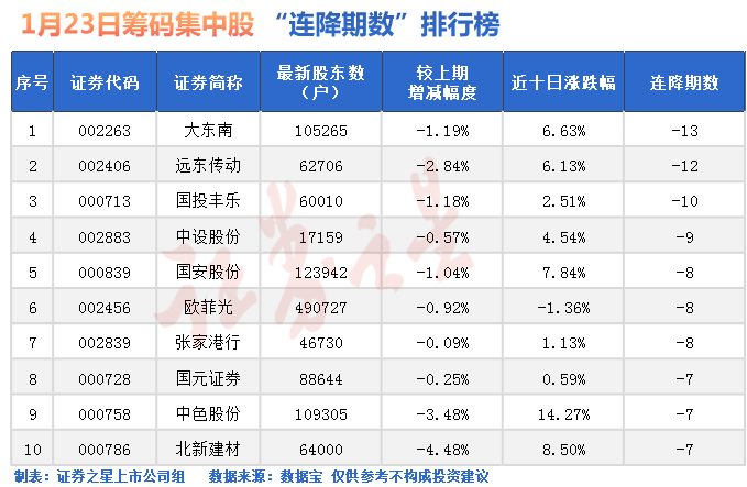 具体来看,除ST股外,大东南股东户数已经连降13期;远东传动东户数已经连降12期。