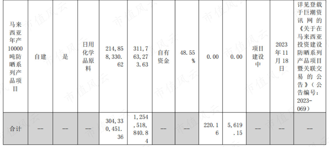 最新的财报显示,公司在马来西亚和安庆的项目仍在推进。特别是马来西亚年产1万吨防晒系列产品的项目,显示出公司想要继续在全球范围内抢占份额的野心。
