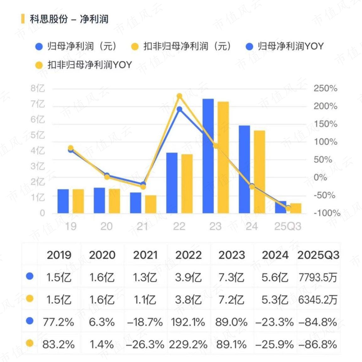 就在1月21日,科思股份抛出了一份令人咋舌的业绩预告。公司预计2025年全年的归母净利润只有0.9亿到1.2亿元。这个数字意味着什么?意味着相比2024年,它的净利润暴跌了78.7%至84.0%。